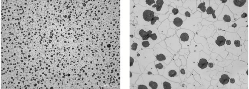 Empirikus megfigyelések alapján tehát a gömbgrafitos vasban a szénegyenérték felső határát akkor éri el, ha az olvadt vasban lebegő grafitot figyelünk meg (1200°C körüli hőmérsékleten). A széntartalom hatása a gömbgrafitos öntvények teljesítményére: A gömbgrafit öntvények széntartalma befolyásolja a grafit mennyiségét, a kicsapódást a megszilárdulás, illetve a grafit átlagos méretére. gömbök. Jellemzően a széntartalomgömbgrafitos öntvények2% és 3,9% között mozog, de kulcsfontosságú megérteni a széntartalom csökkentésének az öntöttvas mechanikai tulajdonságaira gyakorolt hatását. Ezt figyelembe kell venni a szerkezet, a méretek, a falvastagság és a szomszédos síkfalak falvastagságának hibái alapján.gömbgrafitos öntvények. A gömbgrafitos vas széntartalmának 4%-ról 2,5%-ra való csökkentése kismértékben növelheti a szakítószilárdságot és a folyáshatárt (körülbelül 23-31 N/mm²), valamint a nyúlást is kb. 5%-kal, az ütési értékek jelentős javulásával.